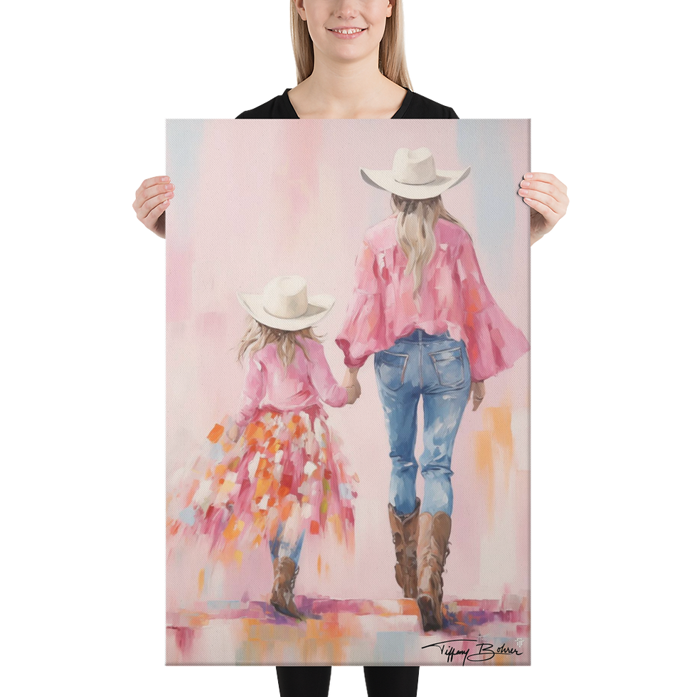 Mother and Child Brunette Cowgirls by Tiffany Bohrer - 24x36 Giclee Canvas